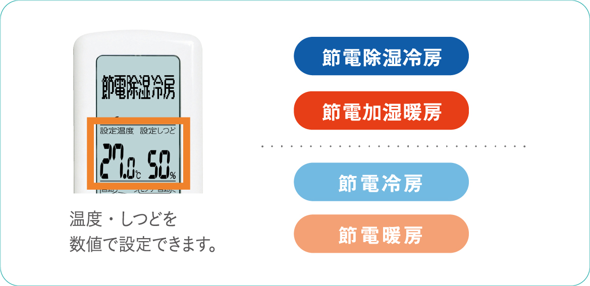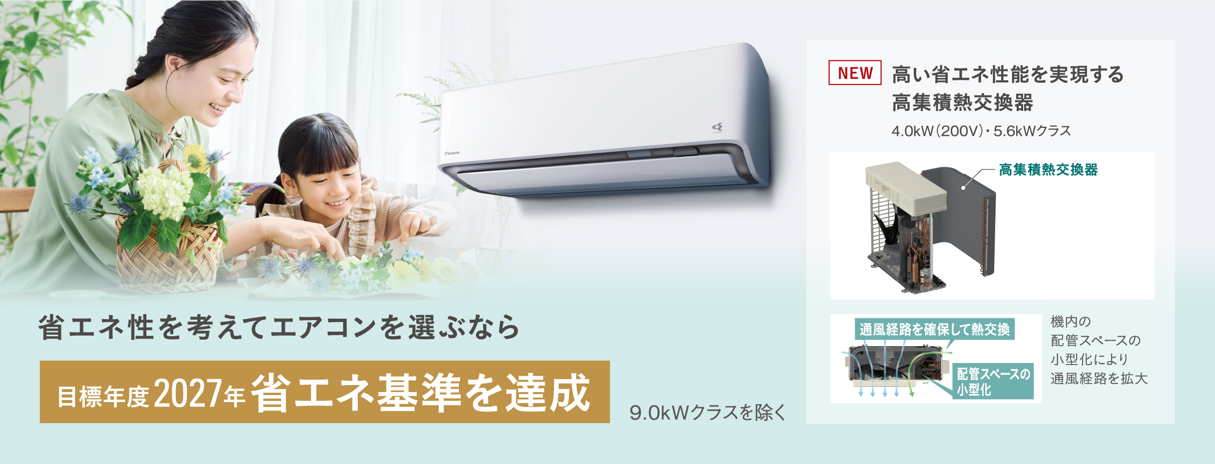 リビングや寝室、仕事部屋など、長時間エアコンを使用するなら省エネ性の高さがポイント。目標年度2027年省エネ基準達成モデルなら、高い省エネ性を発揮します。