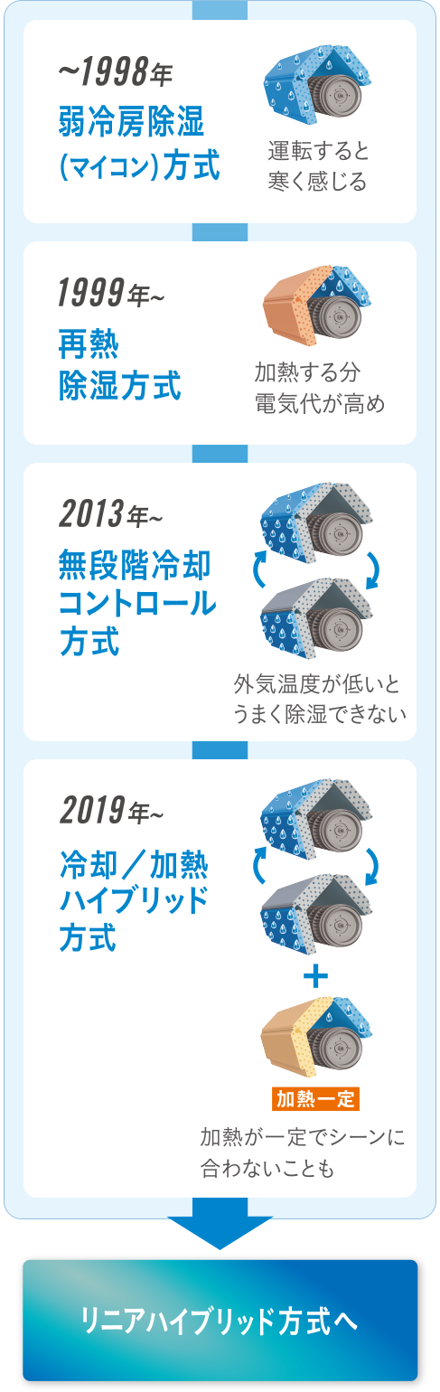 ●リニアハイブリッド方式は複数の除湿方式を切換えるため、一般社団法人 日本冷凍空調工業会による再熱除湿方式には該当しません。