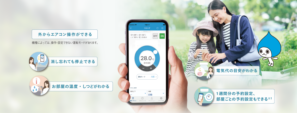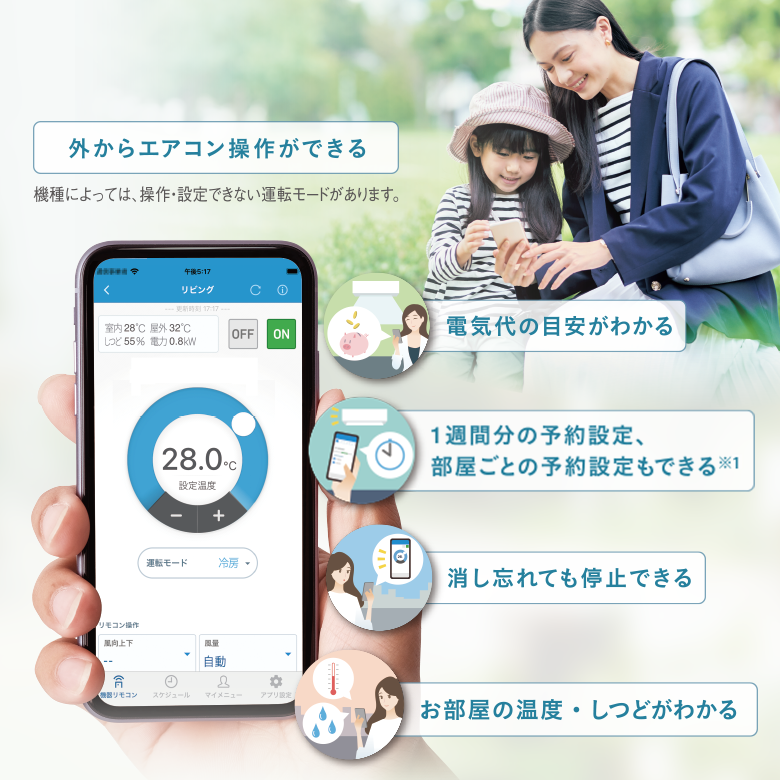 帰宅に合わせた運転や外出時の切り忘れ通知もスマホでできる
