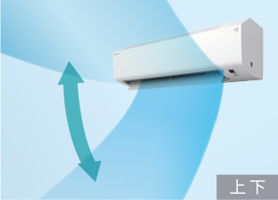 フラップを上下に、ルーバーを左右に、交互に動かし、お部屋の隅々まで快適気流を届けます。