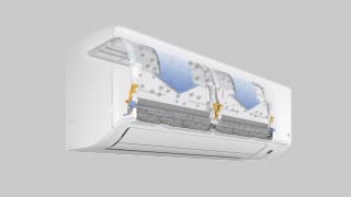エアコンが吹き出した気流を上方へ持ち上げ、風がからだに直接あたりにくい快適空調をお届けします。