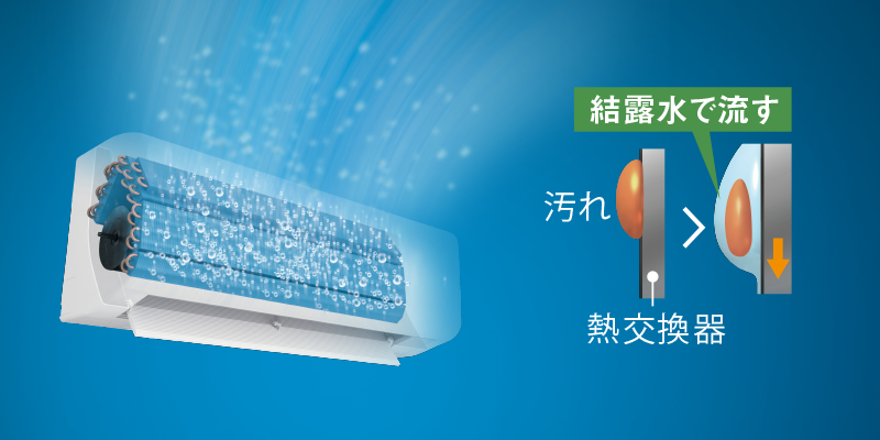 冷房・除湿運転の停止後、自動的にストリーマ照射と送風・暖房で乾燥を行います。