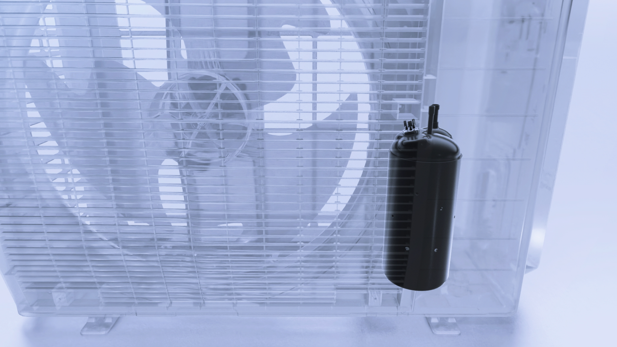 エアコンの性能を左右する心臓部・コンプレッサーは、なめらかな動きでエネルギーをムダにしない、高効率運転を行います。