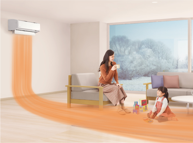 家庭用エアコンにおいて当社独自のスイング式を採用。