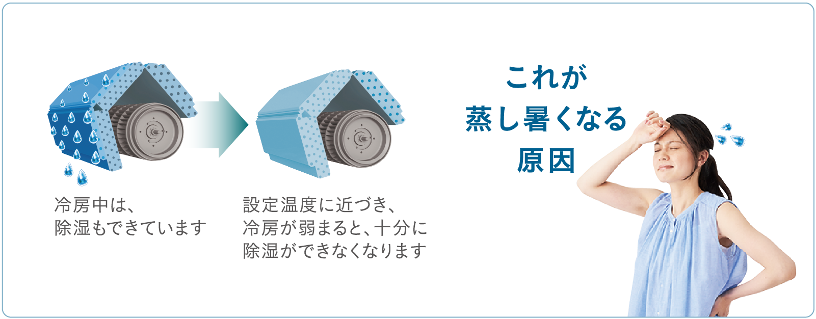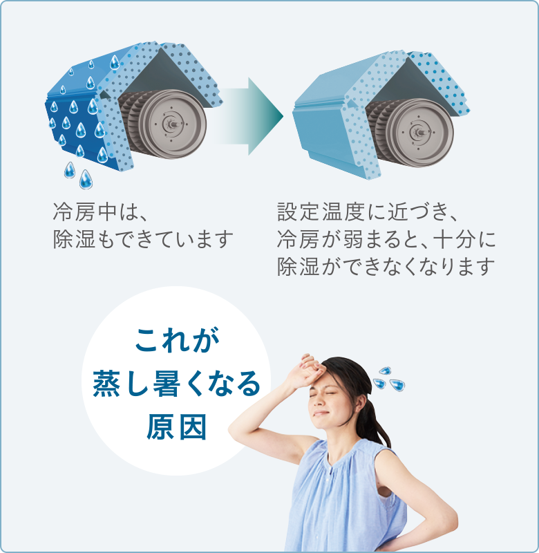 設定温度になったあとも蒸し暑さを感じにくい快適冷房