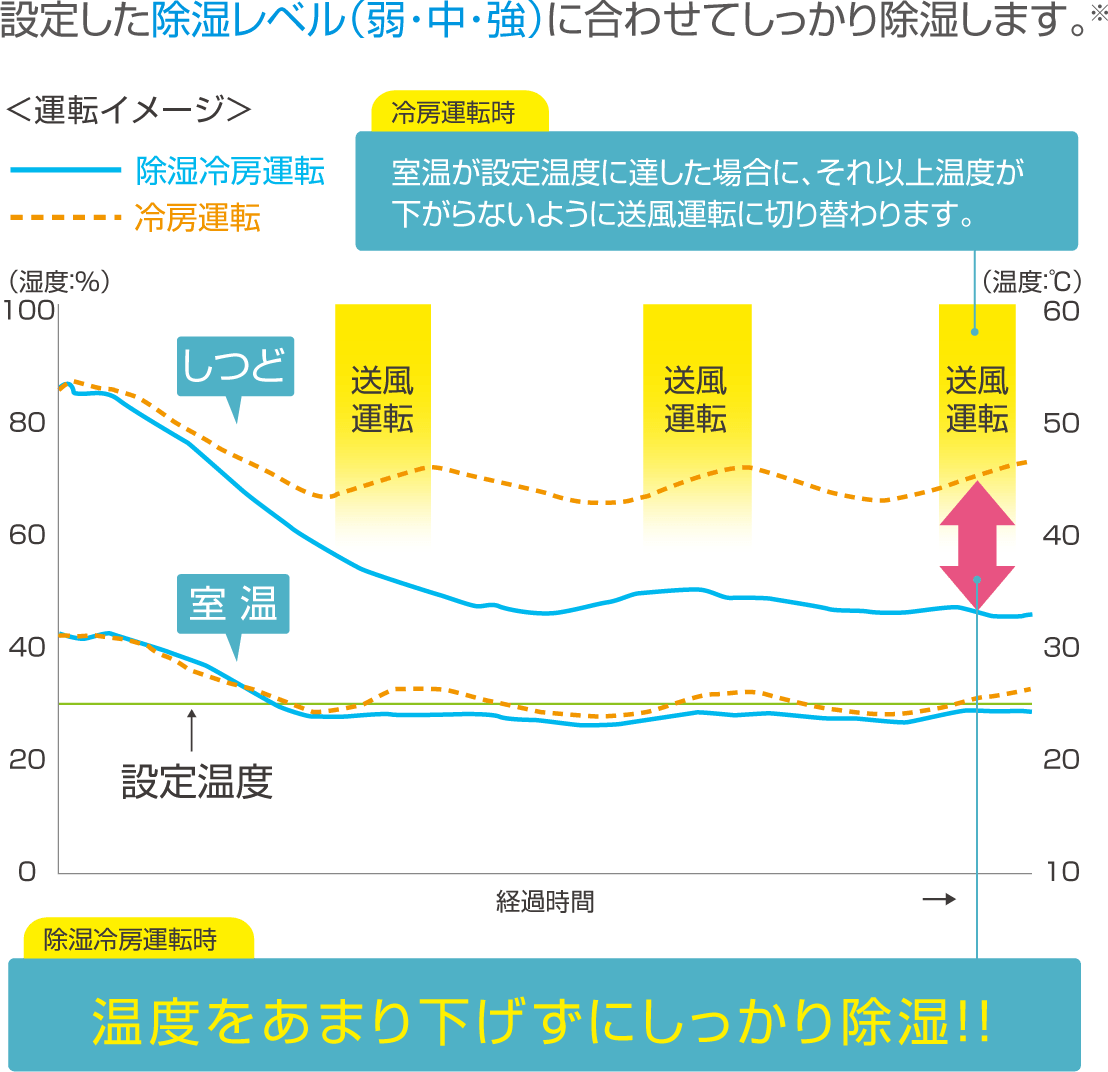 冷房や除湿冷房運転停止後に、室内機の乾燥運転を実施。