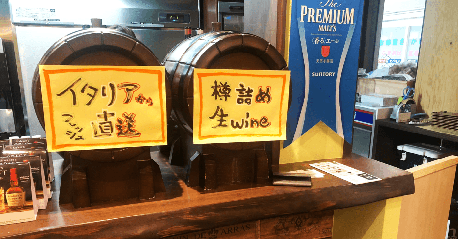 2018年9月18日オープンのワイン酒場かっちゃん。赤を基調とした温かみのある、フラッと寄りたくなる雰囲気のお店です。お店の看板商品は、まだまだ日本では取り扱いの少ないイタリア直送の“生ワイン”。お店でグラスに注がれるまで一切空気と光に触れず、とてもフレッシュな味わいを楽しめるのが特徴です。石窯で焼く本格的なピザと共に、ビールやハイボール等と同じように、気軽にワインを楽しんでもらいたいという店主の想いが詰まっています。ガッツリ食べてガツガツ飲める、エネルギーと希望に満ち溢れた泉佐野のお店です。