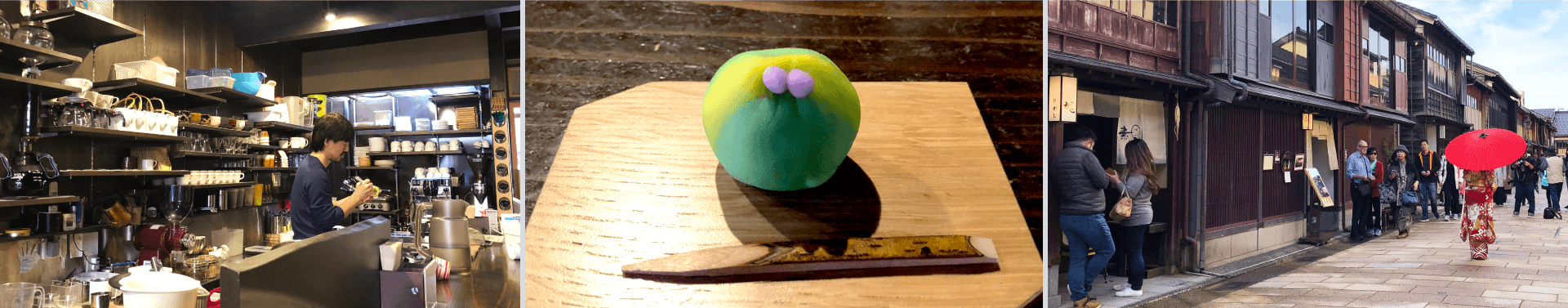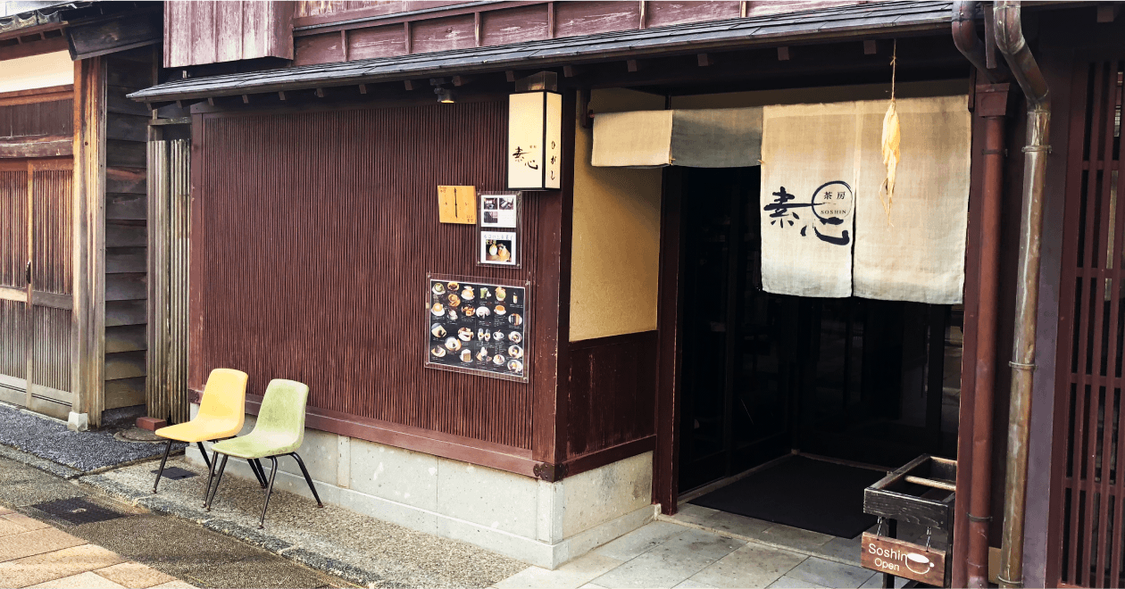 金沢を代表する観光地『ひがし茶屋街』。その美しく風情のある街並みは、国の重要伝統的建造物群保存地区に選定されています。ひがし茶屋街ご出身の奥様が、「この町でいつかお店をやりたい」という夢を実現させた『茶房 素心』。昔ながらの喫茶店を尊重し、コーヒーは注文を受けてから豆を挽き、一杯ずつドリップしています。沢山の観光客の方が訪れる中、一杯一杯のコーヒーを通じてお客様との出会いを大切にされています。