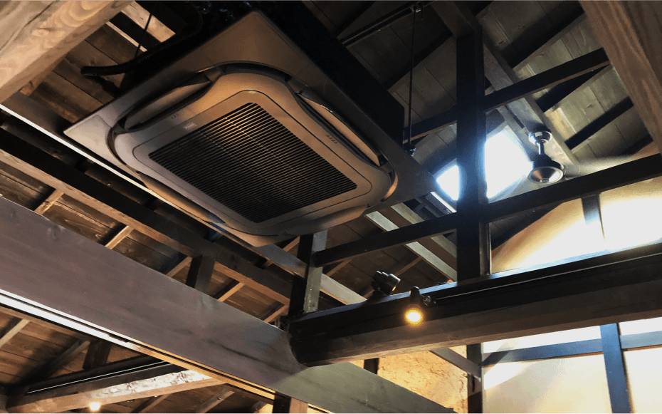 お店の状況から業務用エアコンをすすめられましたが、室内機の存在感があり、お店の雰囲気を損ねてしまうのではとはじめは反対でした。しかし内装とあわせた黒のパネルで提案いただき、ラウンドフローにすることで、気流が全体に行き届き、これまで気になっていた温度ムラが解消されるとのことで業務用エアコンの導入を決めました。