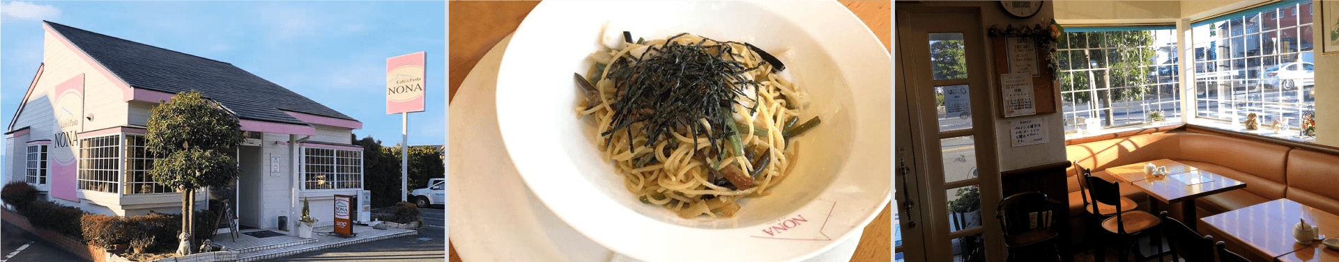 優しいピンク色の看板と屋根が目印のお店Cafe&Pasta NONAはお一人でもゆっくり過ごしていただけることがコンセプト。店内は自然光が差し込み、ぬくもりある木の家具や、観葉植物などがあるリラックスできる空間で、ゆったりとくつろがれるお客様が多くいらっしゃいます。もちろんお料理にもこだわりがあり、パスタや生地から作っているピザを中心に種類豊富なメニューを提供されています。創業33年、落ち着いた店内と美味しいお料理、お店の方の温かい想いが溢れるぬくもりあるカフェとして、女性のお客様を中心に沢山の方に愛されています。