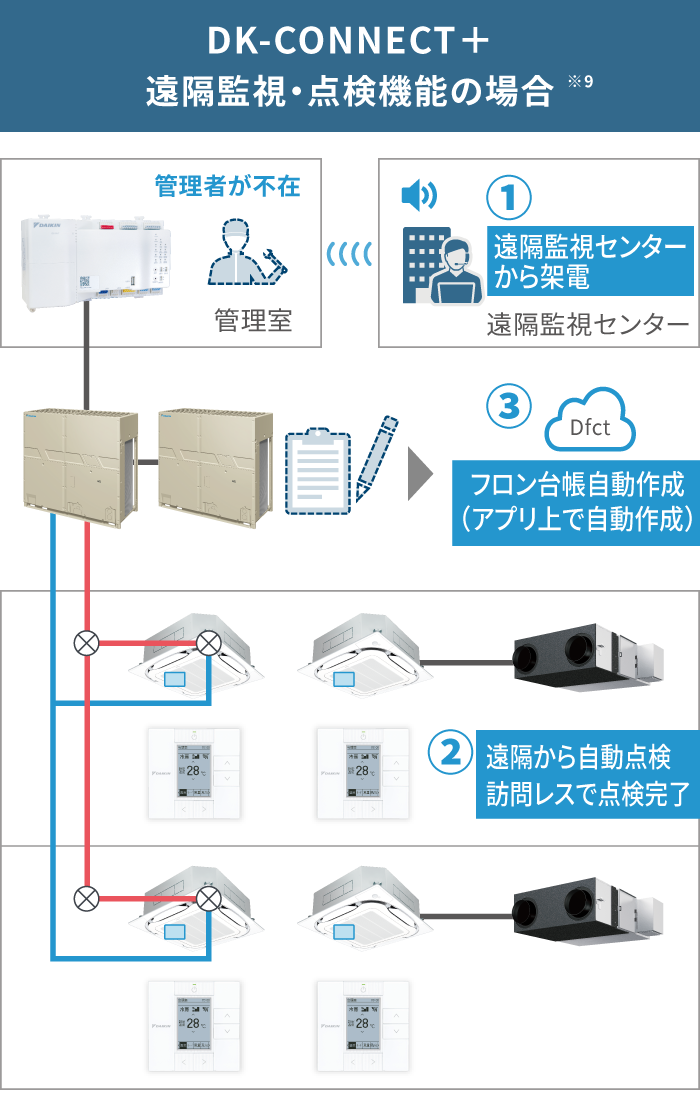 DK-CONNECTの場合 | DK-CONNECT + 安全設備 遠隔監視・自動点検機能の場合※9 |