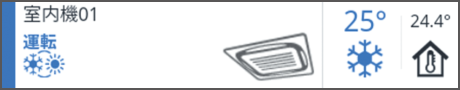 暖房・冷房運転や機器の異常発生・緊急停止などが色別に表示されるため、