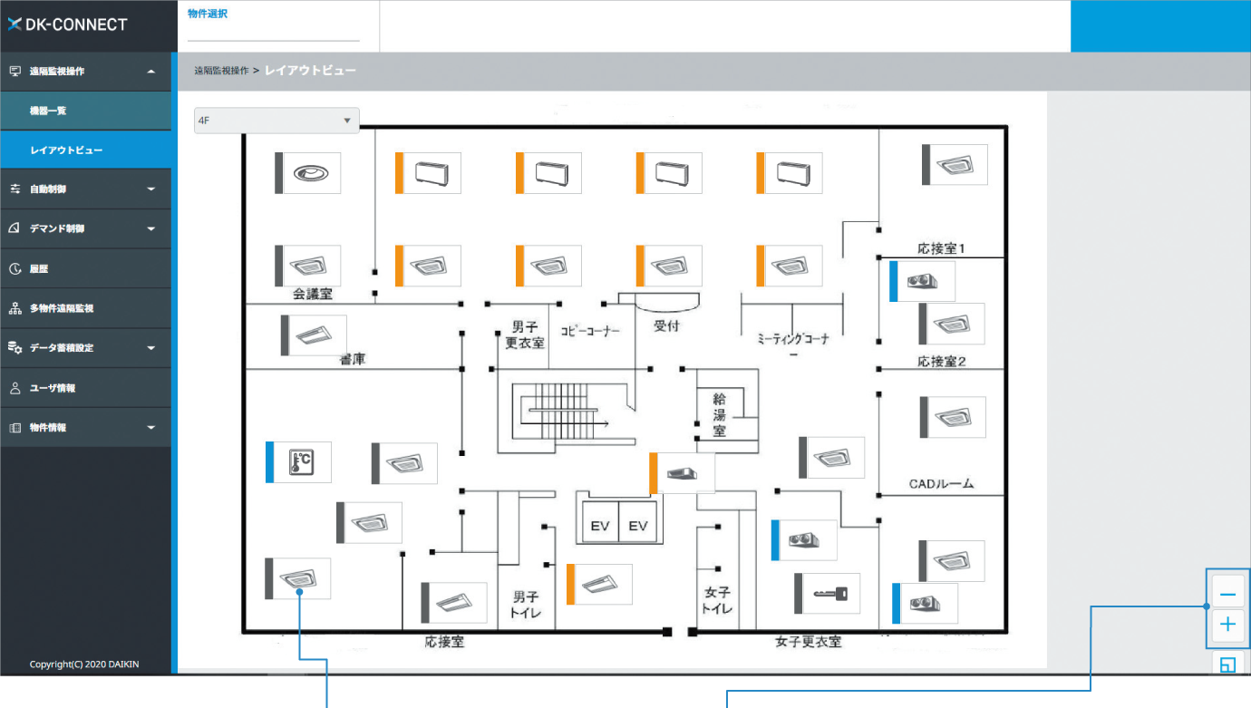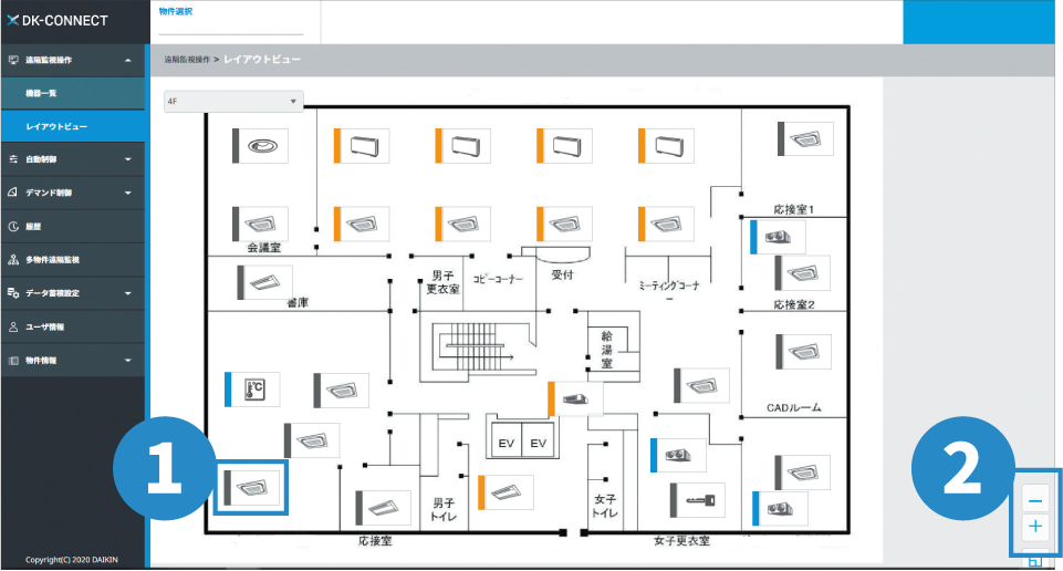 アイコンや色分けでわかりやすく機器の場所を表示し、設置場所に合わせた最適な管理が行えます。