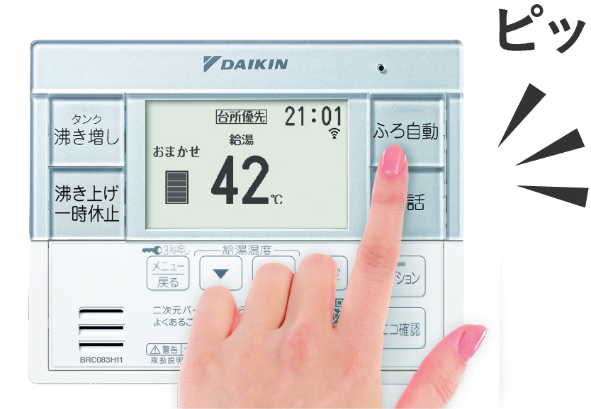 帰宅時間に合わせてふろ自動をONにすれば、ムダなく快適な温度・湯量にしてくれます。