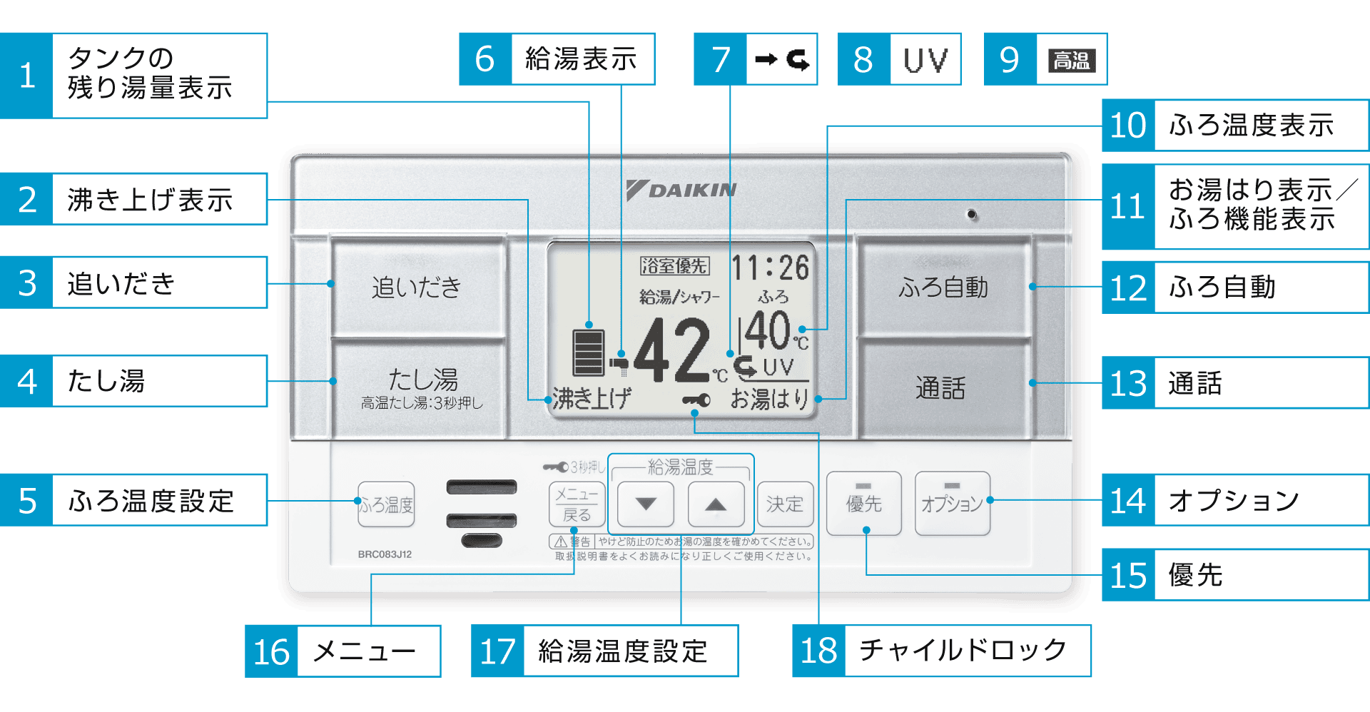 台所リモコン 浴室リモコンBRC083J1 JC-STAR認証対応★1(レベル1)取得