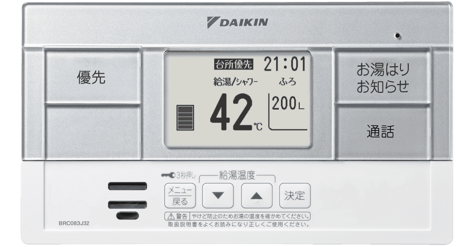 お湯の出しっぱなしや、長時間のお風呂の保温など、気づきにくいムダを、リモコンの液晶画面でお知らせ。かしこい節約方法をアドバイスします。
