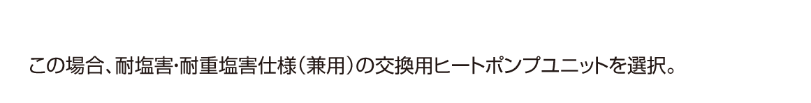交換用ヒートポンプユニットは 耐塩害・耐重塩害仕様(兼用)をお選びください |