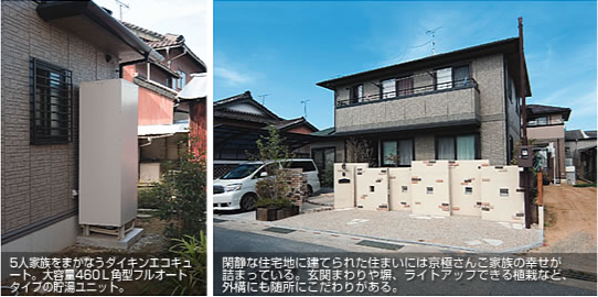 その一端を担うのが、ヒートポンプ給湯機ダイキンエコキュート。「5月にエコキュートを設置してから、光熱費の悩みが解消しました。夏にはガスと電気の料金を合わせて25,000円も支払っていましたが、今年はピークの7月、8月でも11,000円ですみました。この調子でいけば、これから迎える冬も安心して過ごせそうです。オール電化にした近所の友人も光熱費が半分になったと言っていますし、カタログに書いてあることは間違っていなかったですね」と、手放しでお喜びの様子。家計を預かる主婦の実感には説得力がありました。
