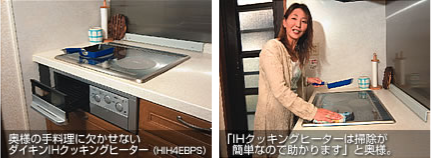 オール電化のもう一つの主役、ダイキンIHクッキングヒーターに切り替えたのは、「ガスに比べて安全」がいちばんの理由でした。育ち盛りのご次男は、奥様がパートに出ている間に、一人でラーメンや目玉焼きなどをつくることもあるため、プロパンガスの時は、火の始末がいつも心配だったと言います。