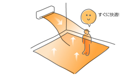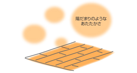 床暖房は、床から直に伝わる熱と、室内を下からあたためる熱との組み合わせ。