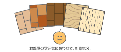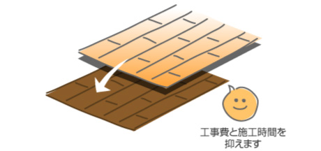 現在使っている床をめくるのは大変…という心配はご無用。上に専用床材を敷く工法があり、施工時間を短縮できます。