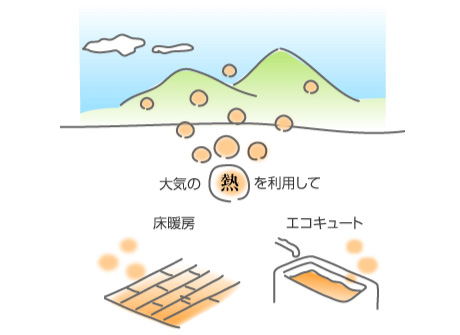 床暖房は、ファンヒーターのように熱い風であたためるのではなく、床からだんだんと広がる熱で部屋全体をあたためるのが特長。