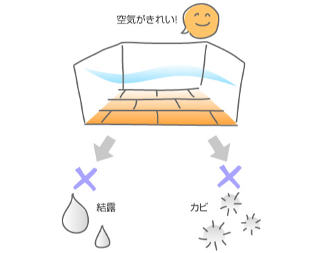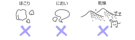だから、ホコリが舞いにくく、空気の乾燥や、においの発生をおさえます。