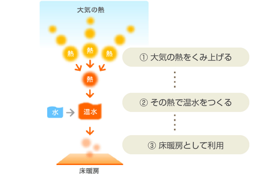 少ない電気で効率的に多くの熱が得られるので、光熱費も大幅に抑えられます。