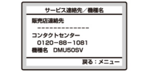 アフターサービスにスムーズに対応できるように、各サービスの連絡先と機種名の表示機能も装備しました。