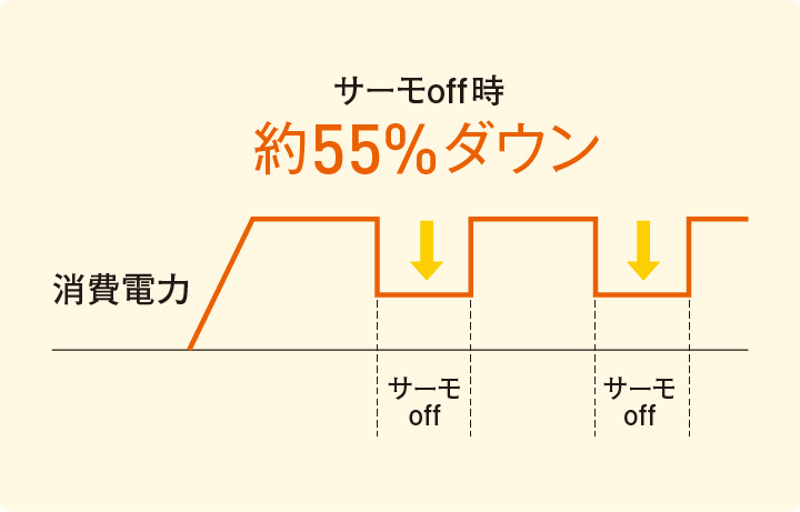 高効率のDCポンプは設定温度に到達すると、温水の流量を抑えるのでその後の運転のムダな消費電力をカットします。