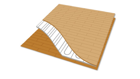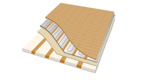 「現在のフローリングをめくらずにリフォームしたい」。そんなご家族におすすめしたいのが、温水床暖房パネルと専用の床材(フローリング)を敷き、ヒートポンプの熱源を接続するタイプです。スムーズな施工のため、工期や工費も抑えられます。