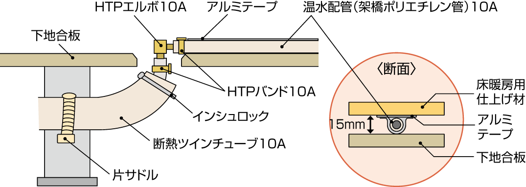 スラブ下地及びその他の下地には使用できません。また、コンクリートへの埋設もできません。