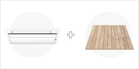 電気温水式床暖房に、天井埋込カセット形のエアコンも選べる、エアコン連動タイプの床暖房「ホッとく~る」を発見されたのです。