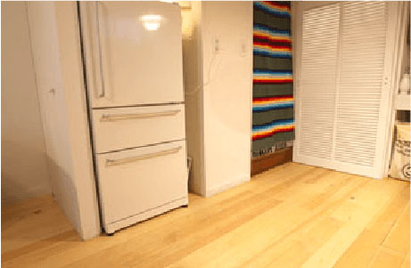 キッチン側は、床下収納を取り外して床の断面をチェックした結果、以前の床材の上に現在の床材が張られていることが確認できました。