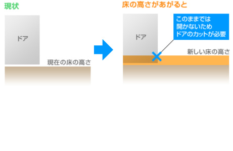「取り外してみないと分かりませんが、古い家なので床の下地が弱い可能性があります。新たに下地を入れることになれば、その分、5mmくらい床が上がるかもしれません」と三橋氏から説明が。