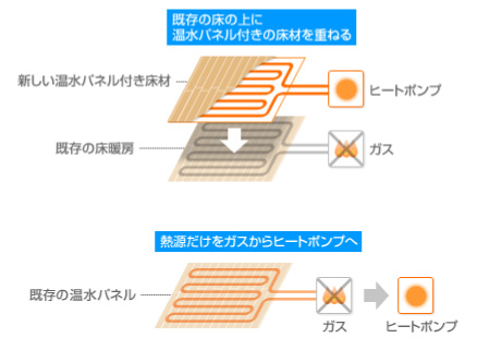 この方法なら、新たな温水パネルを貼るより工事の負担はぐっと少なく、しかも低コスト。