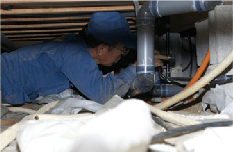 古さによる不具合は、湯浅様ご一家が最も気にしていらっしゃる点の一つです。床下をチェックした結果、配管の一部に銅管が使われていることが明らかに。