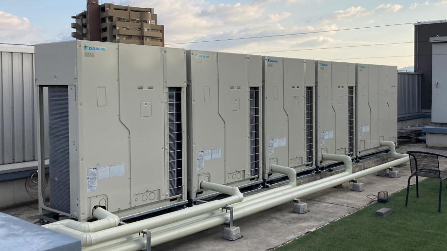 ZEB化に際し、竣工当初のビル用マルチエアコンの能力から若干余裕を残し、21%削減した54馬力(151.2kW)へのダウンサイズ、超高効率ビル用マルチエアコンの採用、高効率の全熱交換器を採用しました。その結果「ZEB Ready」の要件である一次エネルギー消費量50%の削減を実現しました。